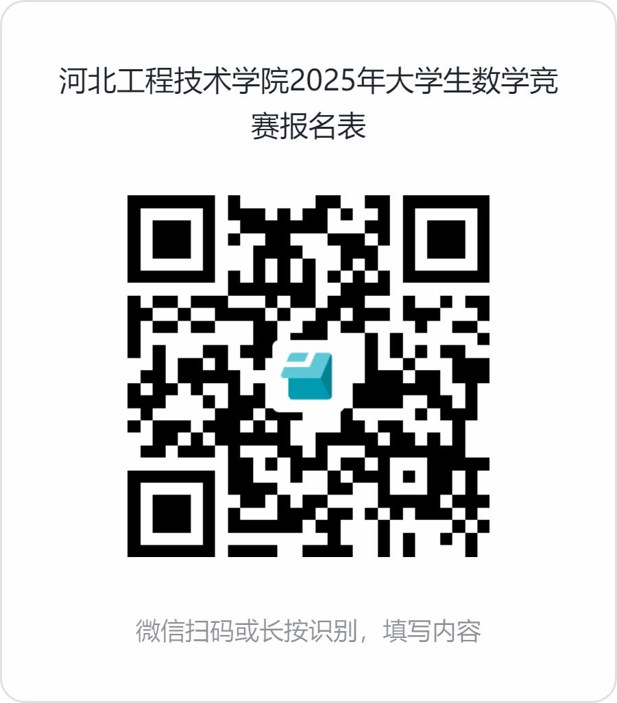 符合条件的学生微信扫码填写“河北工程技术学院2025年大学生数学竞赛报名表”,并加入QQ群:1030813462。入群后请将群昵称修改为“学院+专业班级+姓名”。